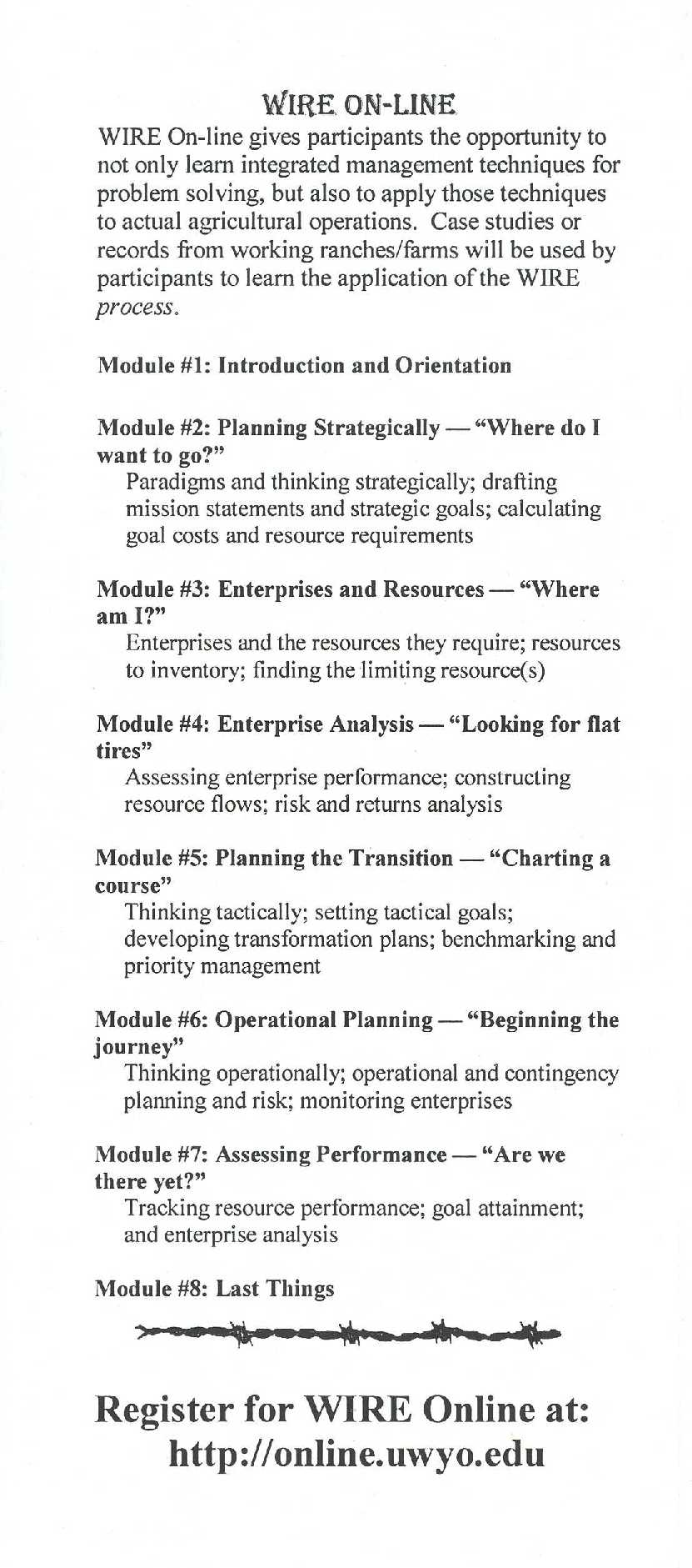 WIRE Program Schedule